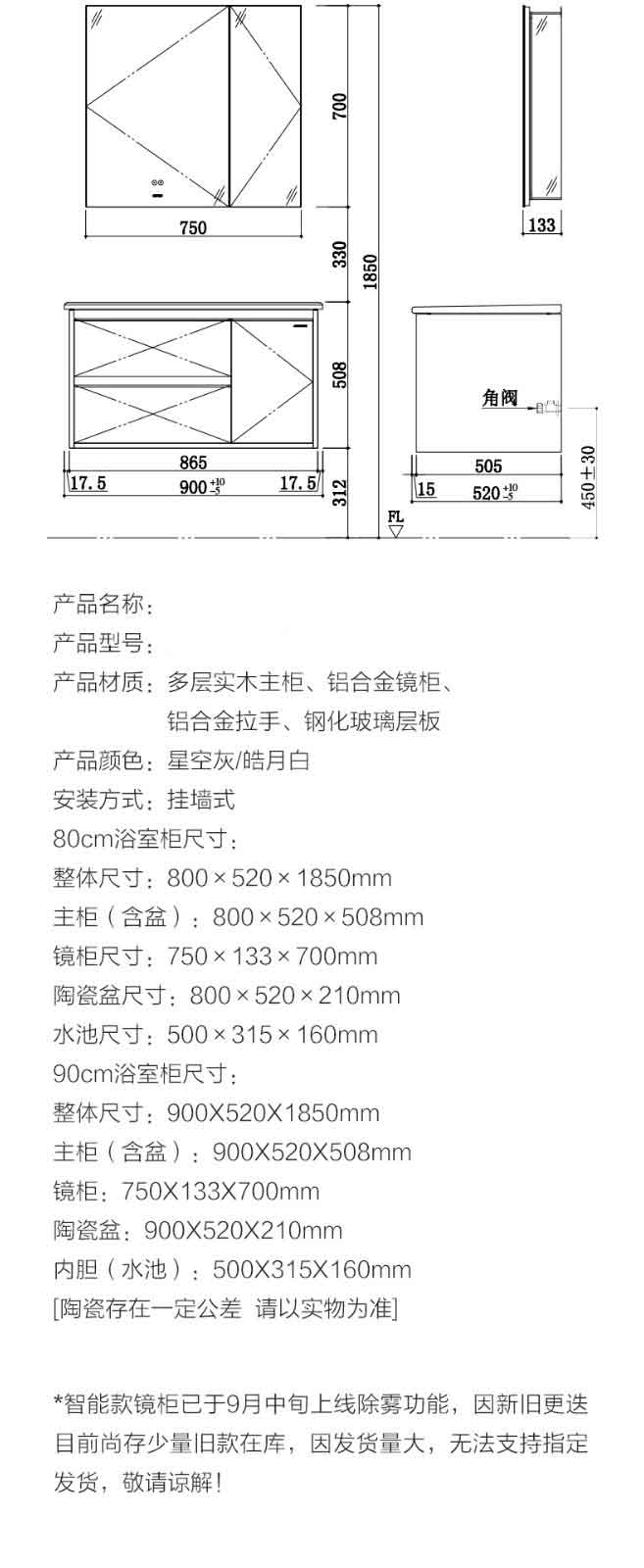 挂式浴室柜单层抽屉